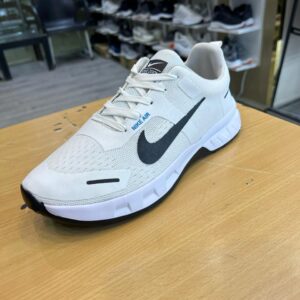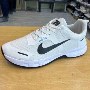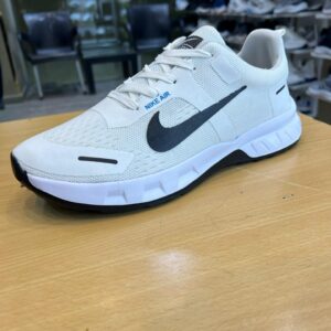 كوتشي رياضي شبابي بخامة Mesh لتهوية مثالية، بلون أبيض أنيق وشعار جانبي أسود، ونعل EVA خفيف ومتين.